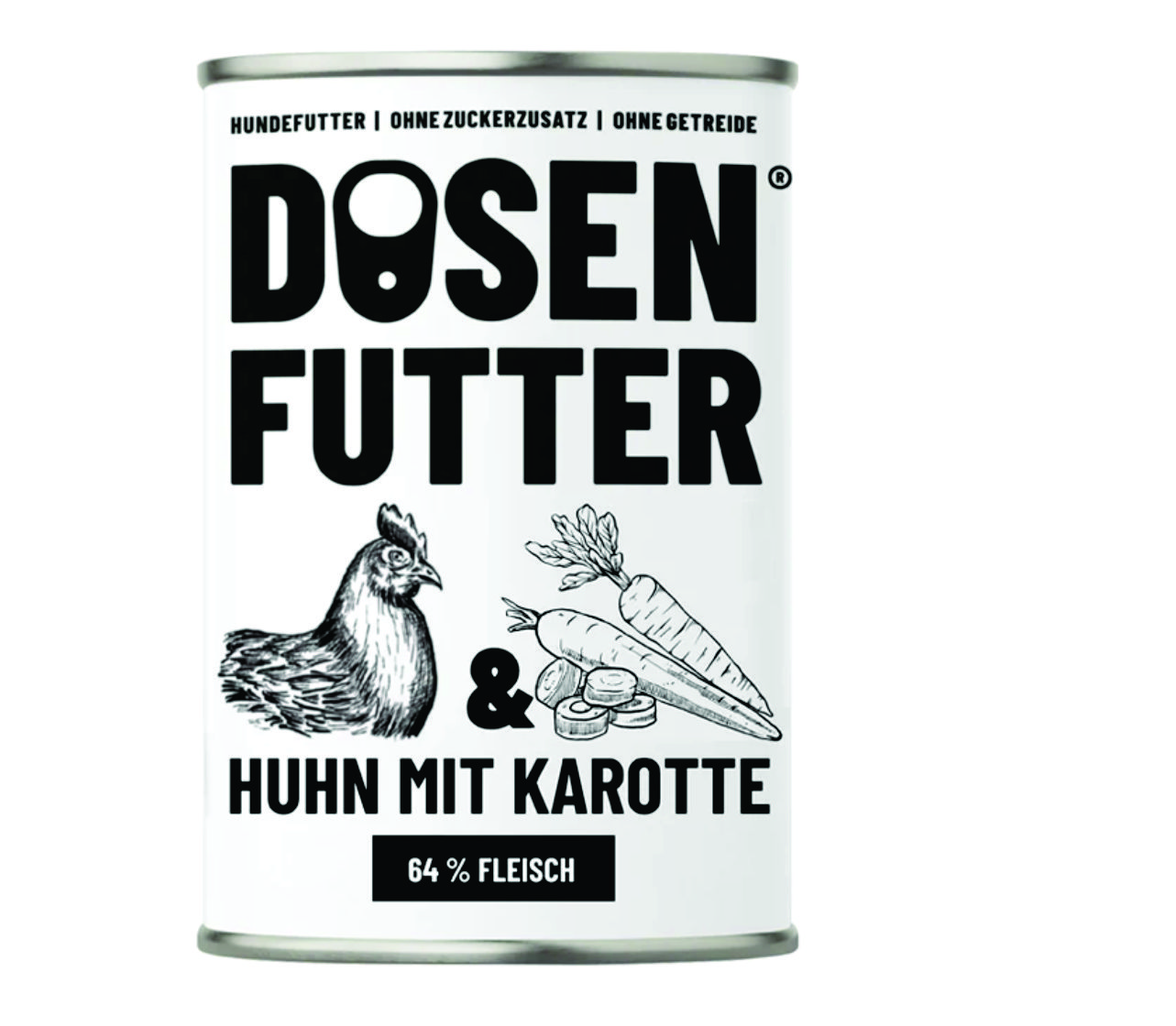 64 % Huhn, 30 % Brühe, 4 % Karotten, Mineralstoffe