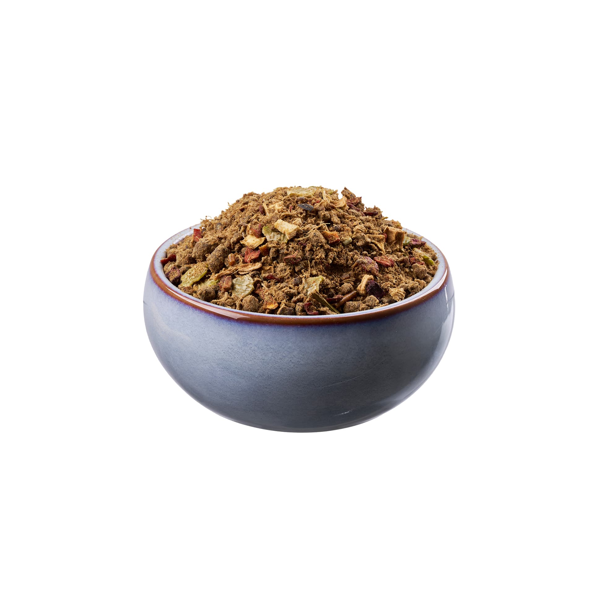 Die Kombination aus frischem Rindfleisch, mineralstoff- und vitaminreichen Innereien, kalziumreichen gemahlenen Knochen vom Brustbein, knackigem Apfel, bestem Gemüse und hochwertigen Kräutern versorgt Ihren Vierbeiner mit allen wichtigen Nährstoffenm – ganz ohne künstliche Zusätze.